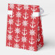 Caixa náutica vermelha e branca com âncoras e rodas de capitão.