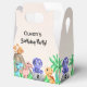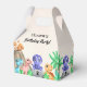 Esta é uma adorável caixa de favores de aniversário de um dinossauro para a festa de aniversário de um menino. A ilustração consiste em 4 adoráveis dinossauros bebês com um vulcão no fundo e alguma folhagem. A caixa de favoritos pode ser personalizada com seus próprios detalhes.