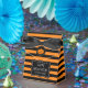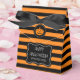 Bandas pretas e laranja personalizadas... caixa de propinas do festival Feliz Halloween com arco preto. Ideia personalizada de presente para convidados em festas de fantasia, aniversários, chá de fraldas, casamento, truque ou tratamento etc. Design de riscas ousadas e divertidas com o logotipo da cabeça de abóbora gravado por uma lanterna. Altere a quantidade para obter o preço de desconto em massa barato. Suprimentos e acessórios para adultos e crianças. Jack ou lanterna, abóbora-cara.