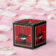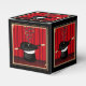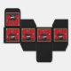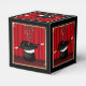Ilustração gráfica do chapéu de mágico com fundo de cortina vermelha pelo artista/designer Charmaine Paulson em caixas de favor partidárias. As caixas de favor têm uma modelo para a sua personalização. ©2015charmanepaulson