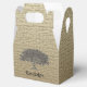 Um dos lados mostra espalhando carvalho com Nome da Família embaixo. O outro lado mostra Nome da Família, Nome do Evento, Local e Data. Todos os campos de texto estão disponíveis para personalização.