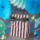 Listras rosa claro e preto decoram esta linda caixa de favoritos. Esta caixa de favoritos é ótima para um chá de noiva, casamento, recepção, festa de aniversário, chá de bebê, etc.... O design é de arte original.