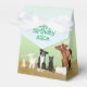 Comemore o aniversário de uma criança em estilo com esta bonitinha caixa de favores de festas de animais de fazenda. Apresentando um burro, um ganso, uma galinha e seus pintinhos, uma cabra bebê, um leitão, um coelho, dois cordeiros, uma cola de fronteira, um gato preto e uma vaca e seu bezerro, a caixa pode ser personalizada, como quiser.