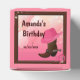Uma ilustração gráfica de um chapéu de cowgirl e botas em uma caixa de Festa de aniversário.