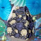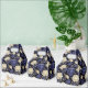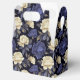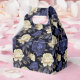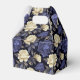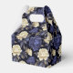 A caixa de guloseimas para festa é mostrada com uma linda estampa floral de peônias multicoloridas em azul.