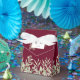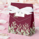 Uma elegante caixa de lembrança de casamento com delicadas folhas de aquarela em um fundo bordô emoldurando suas iniciais de monograma e data especial em tipografia moderna. Você pode personalizar com sua própria mensagem de agradecimento sob a tampa. Uma maneira perfeita de dizer obrigado aos seus convidados! Desenhado por Thisisnotme©