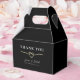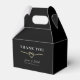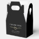 Agradeça aos seus convidados com estilo com esta caixa de lembrança de casamento preta e dourada elegante. Com um coração de corda dourada romântico, fundo preto minimalista e tipografia refinada, esta caixa de lembrança é perfeita para embalar guloseimas, pequenos presentes ou doces. Personalize com seus nomes e data de casamento para um toque final sofisticado e memorável.