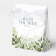 Uma elegante caixa de lembrança de chá de bebê com folhagem verde e tipografia azul poeira. Você pode personalizar com sua própria mensagem de agradecimento sob a tampa. Uma maneira perfeita de dizer obrigado aos seus convidados! Criado por Thisisnotme©