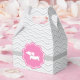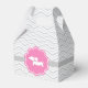 Envie seus convidados para casa com um pouco de gingado e rebolado! Esta adorável caixa de lembrancinhas apresenta um doce dachshund rosa emoldurado em uma medalha rendada sobre um fundo cinza xadrez chique. Estilosa e divertida, é perfeita para guardar pequenos presentes, brinquedos ou lembrancinhas de festa.