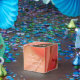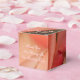 Rico Caixa de favores para seus convidados adorados com um rosa de pêssego. O texto em branco e coral pode ser personalizado para seus detalhes especiais do dia. Todo o texto é removível.
