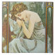 Repos de la Nuit de Alphonse Mucha (descanso noturno) 1899. Uma beleza clássica da idade dourada travou em repouso, sua cara bonita que encontra-se graciosa em sua mão. Linhas fluidas e paleta sofisticada de verdes macios.