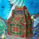 Bonita caixa de presentes de Natal com decoração floral verde-vermelha