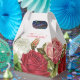 Caixa de presente de festa estilo vintage com rosas para o aniversário de uma mulher, aniversário de casamento ou evento de casamento. Lindas rosas grandes vermelhas, rosadas e brancas cobrem as laterais desta caixa de presente com uma alça. Inclui o texto "obrigado" na frente em vermelho, ou pode ser alterado. Outros tipos de caixas funcionarão, mas o texto precisará ser excluído. A cor do fundo é cinza muito claro.