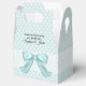 Bonito ocasião especial favorece a caixa de presentes feita em um aquamarine com bolinhas brancas. Gráficos de uma fita branca herdada, correm pelo meio da caixa e um arco de aspecto de uma placa aquamarina, decoram a frente. Personalize o texto negro para sua ocasião. Excelente como caixas de favoritos de casamento, aniversários e chás.