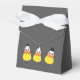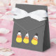 Estas caixas, desenhadas por Aestic Journey, apresentam as palavras "Happy Halloween" juntamente com gráficos adoráveis de milho doce. Use o botão "personalizar" para alterar a cor do plano de fundo e escolher a cor da fita.