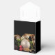 Este design elegante em dourado, preto e prata é uma declaração de um ano bem-sucedido. Use estas caixas para presentes de negócios anuais ou como caixas de favor para acompanhar um evento luxuoso durante as festas de inverno. A frente e a parte de trás apresentam um arranjo opulento de um enfeite prateado brilhante, aninhado em bagas vermelhas, toques de sempre-verde e fios de contas douradas na frente de uma fita rendada dourada e prateada. Centralizado na aba toda preta, você pode adicionar o logotipo da sua empresa ou excluir.