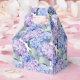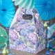 A caixa de lembrancinhas é mostrada com uma linda estampa floral de hortênsias.