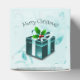 Passe presentes de férias com esta caixa de presentes de Natal teal. O design da caixa de favores apresenta um presente de Natal vibrante enfeitado com flocos de neve caídos contra um rolante elegante e deixa o fundo. Itens adicionais de presentes e feriados disponíveis com este design também.