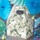 A caixa de tratamento de favor de festa é mostrada com uma linda estampa floral de rosa branca.