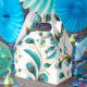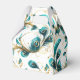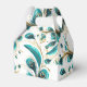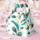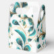 A caixa de favor de festa é mostrada em uma linda impressão de penas de pavão.