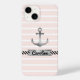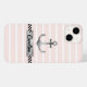 Capas de iphone moderna com âncora de cinza d'água em uma rosa claro e fundo listrado branco. Você também pode personalizar o design com texto personalizado sob a âncora.