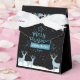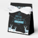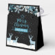 Envie seus presentes em estilo com esta boa caixa de favoritos. Ele apresenta as palavras Feliz Natal e Feliz ano novo junto com silhuetas de renas e flocos de neve em azul contra fundo preto. Faz o toque ideal para os presentes.