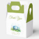 Conclua a celebração do tema do rugby com as nossas Caixas de Favor do Chá de fraldas de Rugby Elegante! Mostrando um delicado design de aquarela de uma bola de râguebi descendo sobre grama verde, acentuado com tons azuis suaves, essas caixas adicionam um toque na moda e coeso ao decoro do seu chá de fraldas. Perfeito para fãs de rúgbi e pais adoradores de esportes. Elevem sua festa com essas caixas elegantes que certamente impressionam seus convidados!