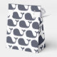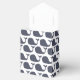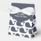 Estas caixas bonitinhas com estilo de tenda têm um padrão de baleia em uma cor azul marinho náutica. O flap é um azul de coordenação e o texto diz "Ahoy! É um menino! 12 de agosto, 20xx". Personalize estas caixas divertidas com a informação do bebê. Estas são excelentes para festas de chá de fraldas, assim como para anunciar a nova chegada. Eles também trabalham bem para a festa de aniversário de um menino com um tema de baleia.