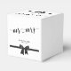 Caixas negras e brancas com arco preto e texto personalizável - você pode adicionar o nome da noiva e do noivo e a data do casamento.