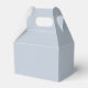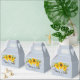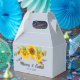 Linda caixa de favor de casamento apresenta um buquê de girassóis em aquarela em um fundo Plein Air (um azul claro) com blocos de texto personalizáveis em fontes modernas