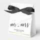 Caixas de favores de casamento preto e branco (caixa de propinas com fita preta) com linhas de ouro e texto personalizável - você pode adicionar o nome da noiva e do noivo e a data do casamento.