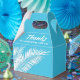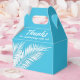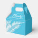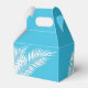 Caixas de favor de festa com folhas de palmeira brancas em um fundo azul. Perfeito para qualquer celebração, festa de aniversário, chá de noiva, festa de noivado, festa de aposentadoria, casamento e muito mais. Clique em PERSONALIZAR para alterar a cor do fundo, as fontes e adicionar texto. Veja os convites e itens COINCIDENTES em nossa loja ---> http://bit.ly/2UyWIVj <---