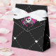 Caixas de Favor de Festas com Ossos Cruzados e Corações Rosa. Personalize o texto para qualquer evento.