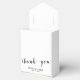 Caixas de favoritos de casamento preto e branco (caixa de propinas com fita branca) com linhas de ouro e texto personalizável - você pode adicionar o nome da noiva e do noivo e a data do casamento.