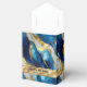 Uma caixa de favoritos de casamento com ouro falso, design azul e branco marmoreado.