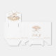 Design de Ventilador Vitoriano Monograma mostra a elegante imagem de um fã vitoriano com o monograma de noiva e noivo logo abaixo dele em adorável letra rosa-ouro mostrada contra um fundo de marfim. Imagem de uma borda desossada ao fundo. Concebido para acompanhar a Tradicional Suite de Casamento Fã Vitoriano Católico.