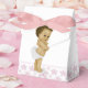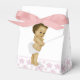 Caixas de favor adoráveis para chá de bebê de menina afro-americana rosa. Você pode adicionar texto, alterar a cor do laço e adicionar uma cor de fundo de sua escolha a esta caixa de favor de chá de bebê princesa étnica rosa.