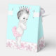 Caixas de favorecimento de chás de fraldas cor-de-rosa e azul-lacre adoráveis. Você pode adicionar texto, mudar a cor do arco e adicionar uma cor de fundo de sua escolha a esta caixa de favorecimento do chá de fraldas princesa rosa giro.
