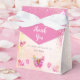 Caixa de favorecimento do Chá de fraldas da borboleta cor-de-rosa-claro apresenta borboletas bonito, cor-de-rosa e douradas, com efeito de brilho dourado e fundo pastel de cor-de-água mole. A inscrição no rico do script lê Obrigado. A borboleta doce deseja que o tema do chá de fraldas de borboletas seja tão especial quanto a mãe a ser.