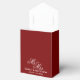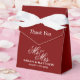Caixas de casamento vermelho e escuro com arco branco. Perfeito para agradecer aos convidados com um doce presente. Modelo de tipografia clássica para o casal se casar. Altere a quantidade para obter o preço em massa barato. Belo modelo formal para o casamento de luxo. Personalize com o nome da RM e da senhora deputada. Ajuste a cor HEX para corresponder ao seu esquema de cores.