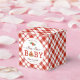 Envie os convidados para casa com uma fatia de obrigados usando estas caixas de favoritos de chá de fraldas com tema de pizza do "Slice Slice Baby"! Apresentando gráficos de pizza divertidos, sotaques vermelhos ousados e scripts divertidos, essas caixas são perfeitas para pequenas ameaças ou guardações no chá de casal ou coed. Uma maneira divertida de amarrar seu chá de fraldas temático da comida. Personalize com uma mensagem de obrigado ou com os nomes dos pais.