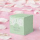Caixas de favores Elegantes, simples e sofisticadas, com rendas brancas, sobre um fundo de papel vintage verde-claro. Estas caixas clássicas e na moda são perfeitas para um casamento rústico. Fácil de personalizar com seus detalhes de casamento. Clique em "Personalizar" para encontrar mais opções de personalização.