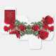 Chá de casamento ou caixa de favoritos de recepção com o rosa vermelha design. Personalize o texto na caixa superior com script branco sobre fundo vermelho escuro. A mensagem de exemplo é, "Muito amor e obrigados por estarem aqui hoje - nomes de casais". Pedaços de belas rosas vermelhas enrolam ao redor da borda e do fundo dessas pequenas caixas bonitinhas, que têm 2 polegadas quadradas e serão reunidas pelo comprador. Este design pode ser transferido para outros tamanhos e formas. Eles irão fazer impressão, como se mostrou, por isso não deixem que qualquer texto fique coberto ou saia da borda.