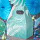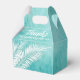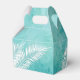 Caixas de lembranças de festa com folhas de palmeira brancas em um fundo de aquarela azul turquesa oceano. Perfeito para qualquer celebração, festa de aniversário, chá de noiva, festa de noivado, festa de aposentadoria, casamento e muito mais. Clique em PERSONALIZAR para alterar a cor do fundo, as fontes e adicionar texto. Veja os convites e itens COINCIDENTES em nossa loja ---> http://bit.ly/2UyWIVj <---
