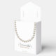 Agradeça a seus convidados com estilo com essas caixas de lembranças de chá de noiva luxuosas com tema de pérolas. Projetadas para complementar qualquer chá de noiva sofisticado, essa caixa de lembrança apresenta um fundo branco elegante adornado com um gráfico de colar de pérolas clássico e uma fita branca macia. Personalizadas com o nome da noiva e a data do evento, essas caixas são perfeitas para presentear pequenos presentes ou guloseimas, adicionando um toque pessoal e elegante à sua celebração. Uma bela lembrança para o seu dia especial!