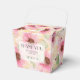 Lindas flores cor-de-rosa e creme em aquarela e folhas elegantes cobrem essas caixas de festa estilo takeout, perfeitas para chás de noiva, chás de bebê e aniversários. ITENS COINCIDENTES em nossa loja.