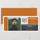 Crie o convite perfeito com este anúncio de formandos de fotos super moderno e limpo. Personalize os convites de festa de formatura mínima com o nome do formando, a universidade, o grau e o ano de aula. Adicione seus detalhes de festa de formatura ou cerimônia também. Este design está disponível em várias cores escolares padrão com cor correspondente no verso. Disponível em vermelho, laranja, amarelo, verde, azul, roxo, marrom, laranja queimado e ouro. Produtos correspondentes e outras cores disponíveis.