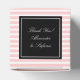 Caixas personalizadas de favoritos para casamento | design de estampagem de pinos cor-de-rosa pastel e branco. Boa ideia para os convidados. Cor de fundo personalizada com linhas brancas. Obrigado personalizado que você envia uma mensagem com o nome da noiva e noiva no topo. Caixa de tamanho pequeno para doces e pequenas pastilhas. Impressão elegante para o casamento clássico.
