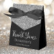 Este fabuloso e moderno 100º Aniversário do Silver Glitter Black Obrigado a uma caixa com brilho prateado cintilante, Obrigado em uma letra de texto de tendência e o nome da aniversariante em prata com um elegante arco preto seria perfeito para o seu evento. Seria excelente para uma estação de doces, em uma obrigado que você mesa de presentes, ou em cada lugar com um favor. Certifique-se de pedir o suficiente para todos os seus convidados.
