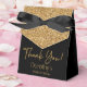 Este fabuloso e moderno 100º aniversário da Glitter Dourada Negra... Obrigado pela caixa com brilho brilhante de ouro... Obrigado em uma letra de trendy script e o nome da aniversariante em ouro com um arco preto elegante seria perfeito para o seu evento. Seria excelente para uma estação de doces, em uma obrigado que você mesa de presentes, ou em cada lugar com um favor. Certifique-se de pedir o suficiente para todos os seus convidados.